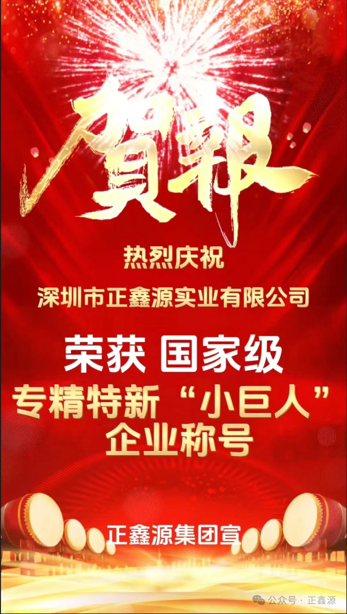 熱烈祝賀深圳市正鑫源實業(yè)有限公司榮獲國家級專精特新“小巨人”企業(yè)稱號